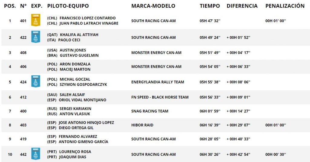 Khalifa Al-Attiyah ha perdido tiempo en la última recta, pero concluye la etapa en segunda posición, a poco menos de 3’ de López. El rookie Seth Quintero vuelve a pisar el podio de una etapa por segunda vez con tan solo 18 primaveras. Habrá que seguirlo muy de cerca…