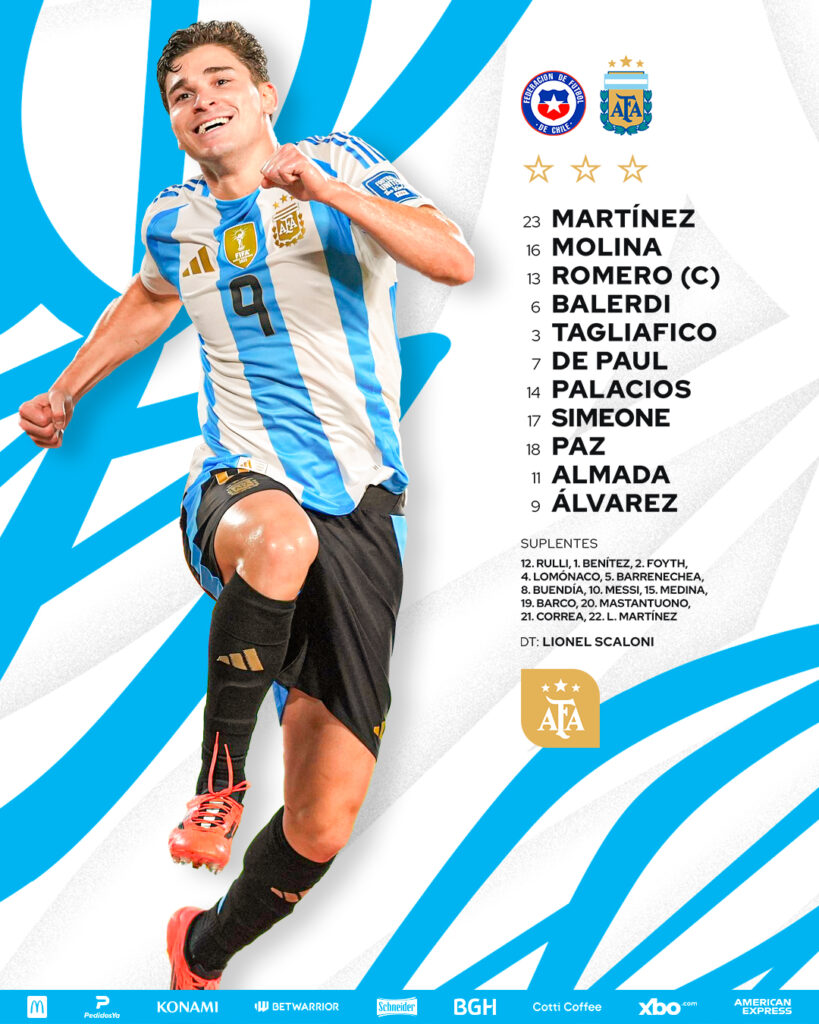De esta forma la albiceleste consigue su cuarto triunfo en línea y se posiciona en el primer lugar con 34 puntos, y La Roja sigue ultima con 10 puntos. Si hoy Venezuela, en calidad de local, no logra vencer a Bolivia, le dará una oportunidad más a Chile.