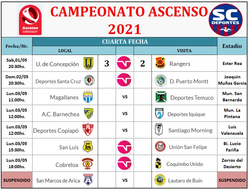 A diferencia de la fecha anterior, esta vez son solo 4 encuentros que serán transmitidos por la señal del futbol TNT Sports, los primeros en enfrentarse, el día de ayer fueron la U de Conce vs Rangers, bajo la lluvia los foreros parece que encontraron el rumbo y vencieron al cuadro piducano por 3 a2 sumando su segundo triunfo en línea, mientras que los Piducanos nuevamente caen sin tener respuesta al mal juego, recibiendo seis goles en dos encuentros.
