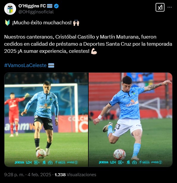 La noche de ayer, fueron anunciados por las redes sociales de Deportes Santa Cruz a dos canteranos provenientes de O’Higgins, se trata de Cristóbal Castillo y Martin Maturana.