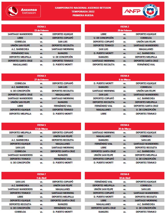 La Asociación de Futbol Profesional dio a conocer el Fixture de la temporada 2022 del campeonato de Ascenso.
