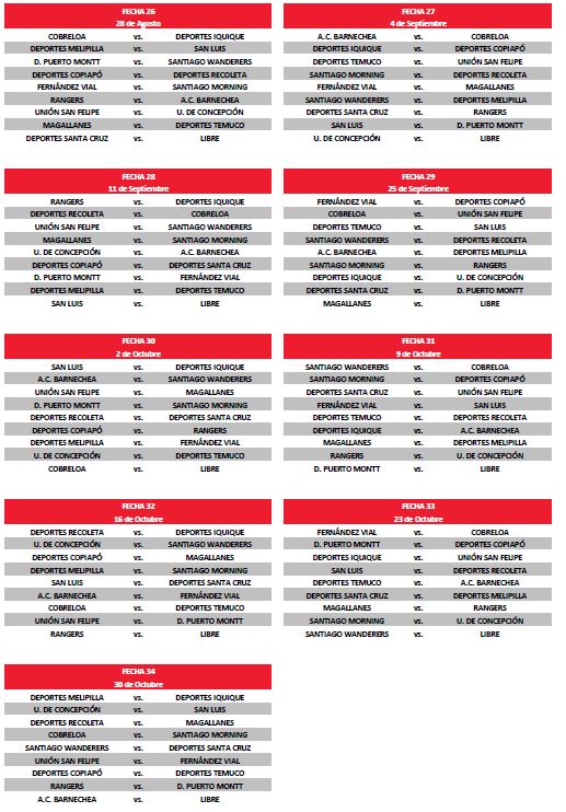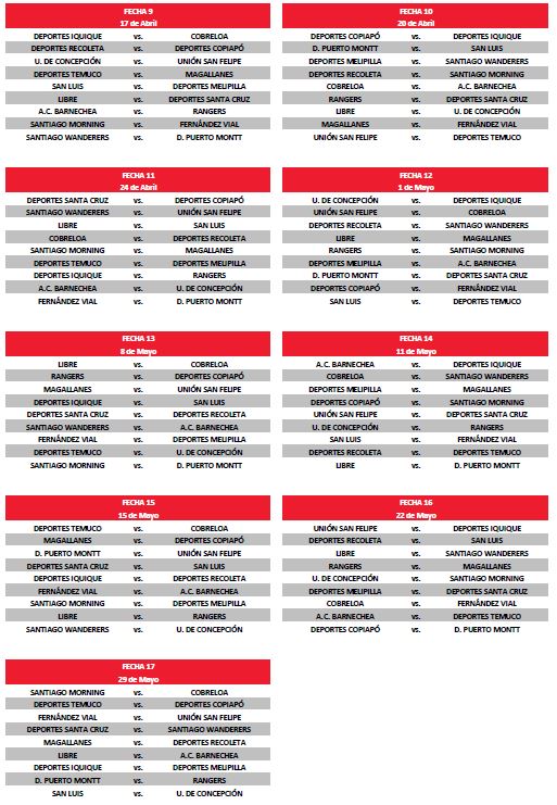 El primer encuentro de los unionistas será ante Deportes Temuco en el Joaquín Muñoz Garcia, encuentro pactado para el fin de semana del 13 de febrero, con fecha y hora a confirmar.