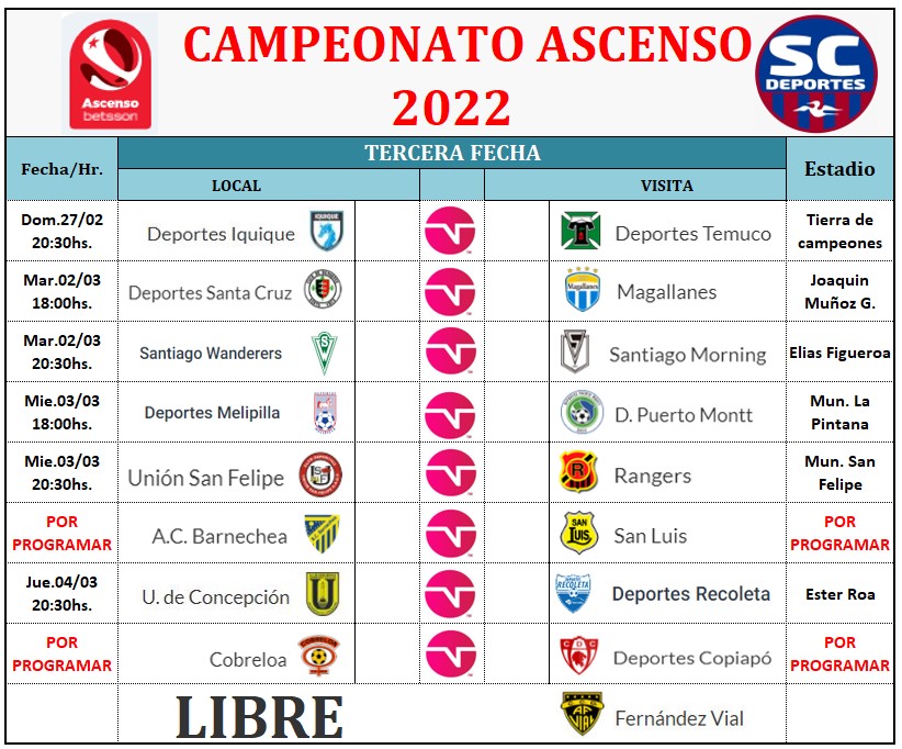 El punta pie de la tercera fecha del Ascenso Betsson 2022 lo dieron Iquique vs Temuco con triunfo de los nortinos, el resto de la fecha será de la misma tónica que se viene dando para la división de plata, dos encuentros por días comenzando el martes y terminando el jueves, este tipo de horario lo dispone el canal dueño de los derechos de transmisión, debido a la logista de producción que se debe mover por todo el país, la disconformidad por los horarios es manifiesta ya que los ingresos por borderó bajó mucho.