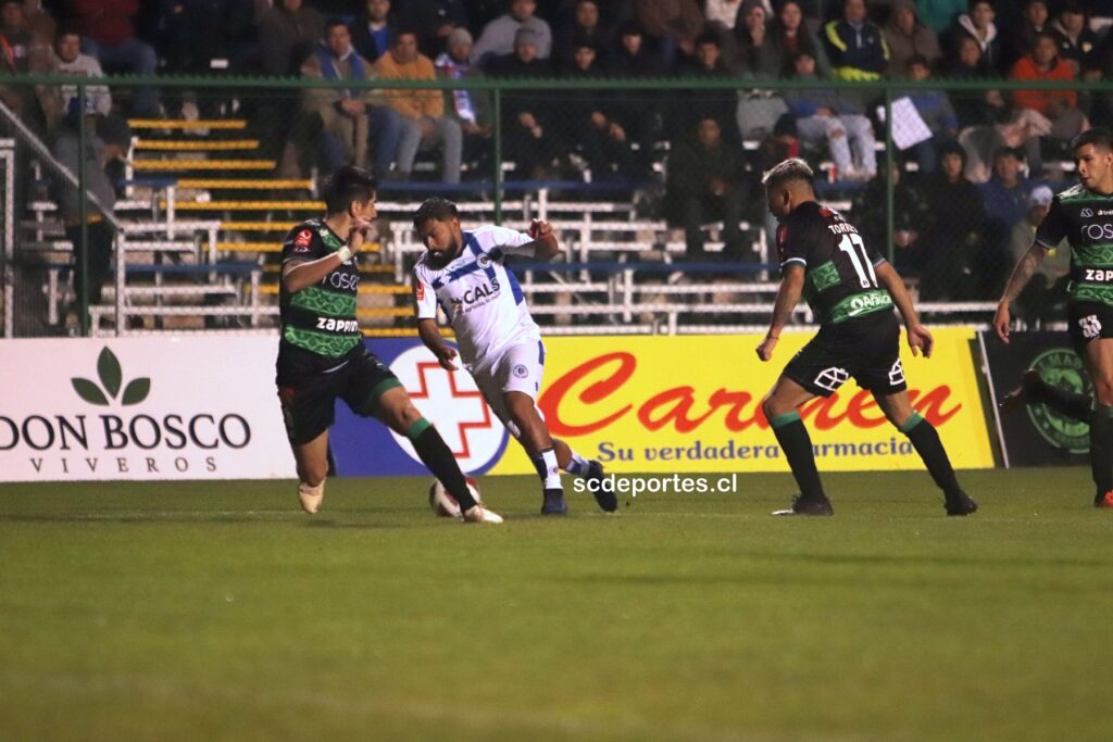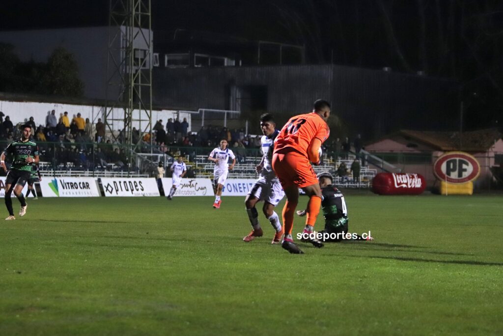 Santa Cruz con un hombre menos se volcó al ataque y al min. 86´ Temuco sale rápido con juego largo por derecha del ataque, cambia de lado para el Zombi Núñez que controla entrando al área y Maxi Velazco logra interponerse manoteando el balón que rebota en Núñez y por poco se va rosando el vertical de la portería local.