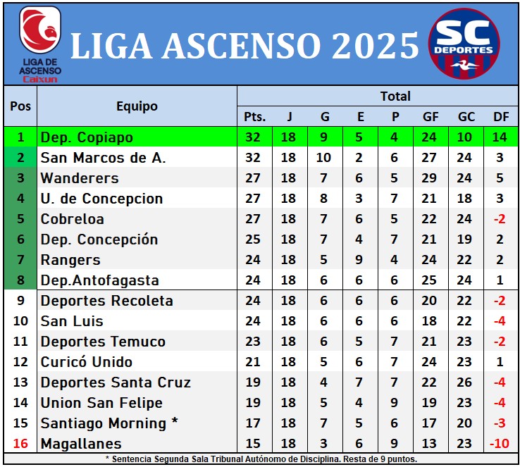 La punta de la tabla sigue dividida entre Copiapó y San Marcos, mientras que la parte baja siguen jugando por salvarse, el más comprometido es Magallanes.