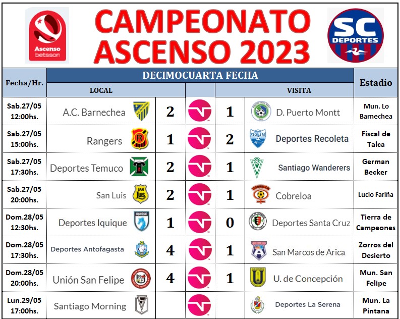 Se jugaron siete encuentros de la décimo cuarta fecha del Ascesno 2023, por ahora con San Luis como único puntero.