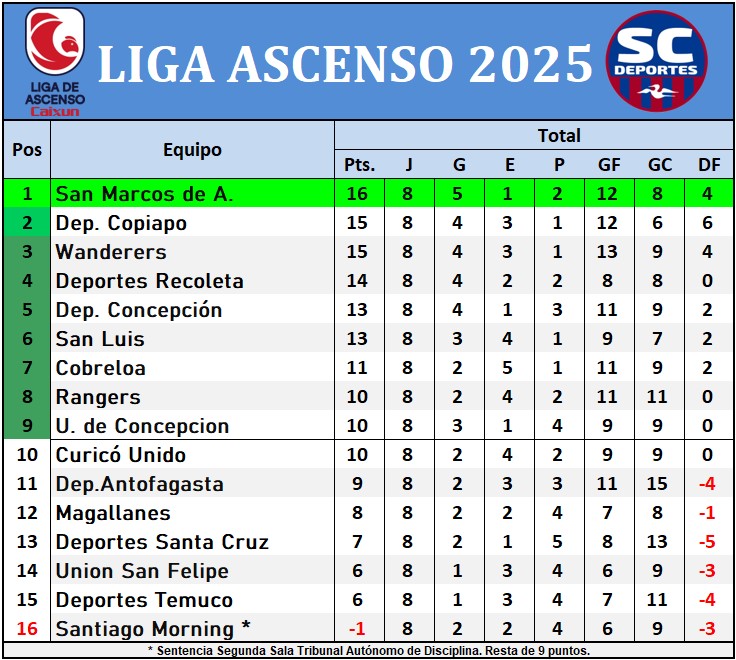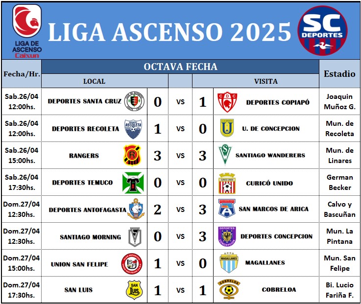 La octava fecha de la Liga de Ascenso 2025 tiene nuevo líder, Los Bravos del Morro tocan el cielo tras vencer en calidad de visitante al cuadro Puma. Mientras que el Colista sigue siendo el cuadro Bohemio con puntuación negativa.