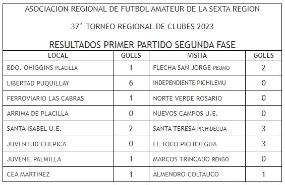 Por la segunda fase, en el partido de ida del 37° TRC Juvenil Palmilla se impuso a Marcos Trincado de Rengo.