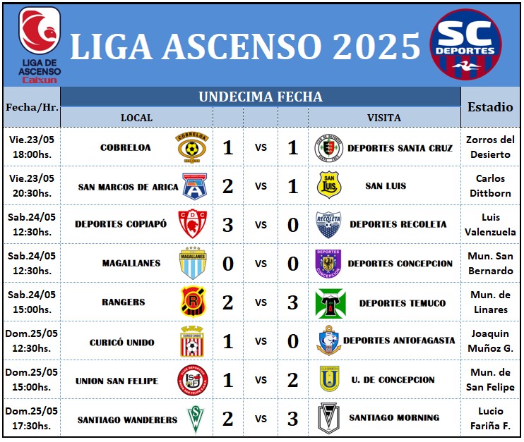 Terminó la undécima fecha de la Liga de Ascenso 2025, en donde quedo un líder y Santiago Morning pudo sumar puntos positivos.