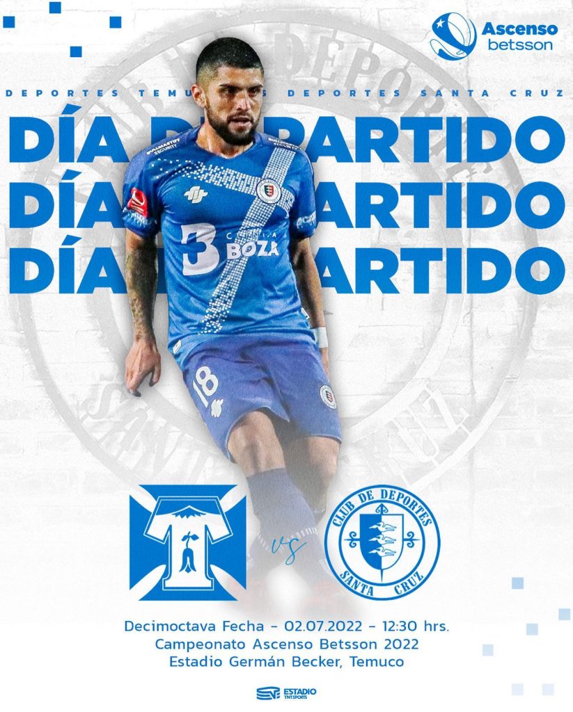 El cuadro de Deportes Santa Cruz se mide con Deportes Temuco en el German Becker por la primera fecha de los encuentros de revancha del ascenso Betsson 2022.