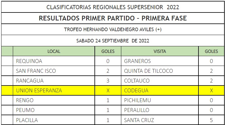 Por el lado de los Seniors corrieron con mejor resultado, en su visita al estadio Puquillay de Nancagua vencieron a Placilla en el primer partido, de ida, por 5 a 1 casi asegurando su paso a la ronda siguiente. Los goles santacruzanos fueron convertidos por Daniel Carvajal, Jorge Santibáñez x2, Cesar aguilera y Alamiro López
