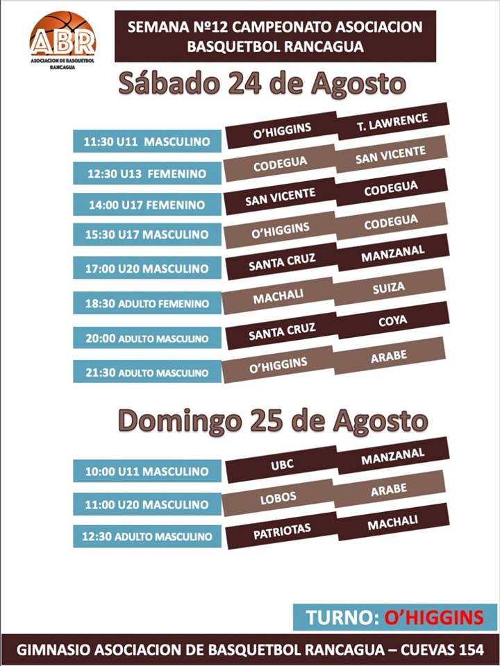 Por el lado de los adultos, que también tuvieron un par de semanas sin jugar, enfrentaran al quinteto de Coya, los unionistas la fecha pasada cayeron ante Machali por 61 a 56, teniendo como el mejor hombre a Ibáñez que logró convertir 21 puntos.